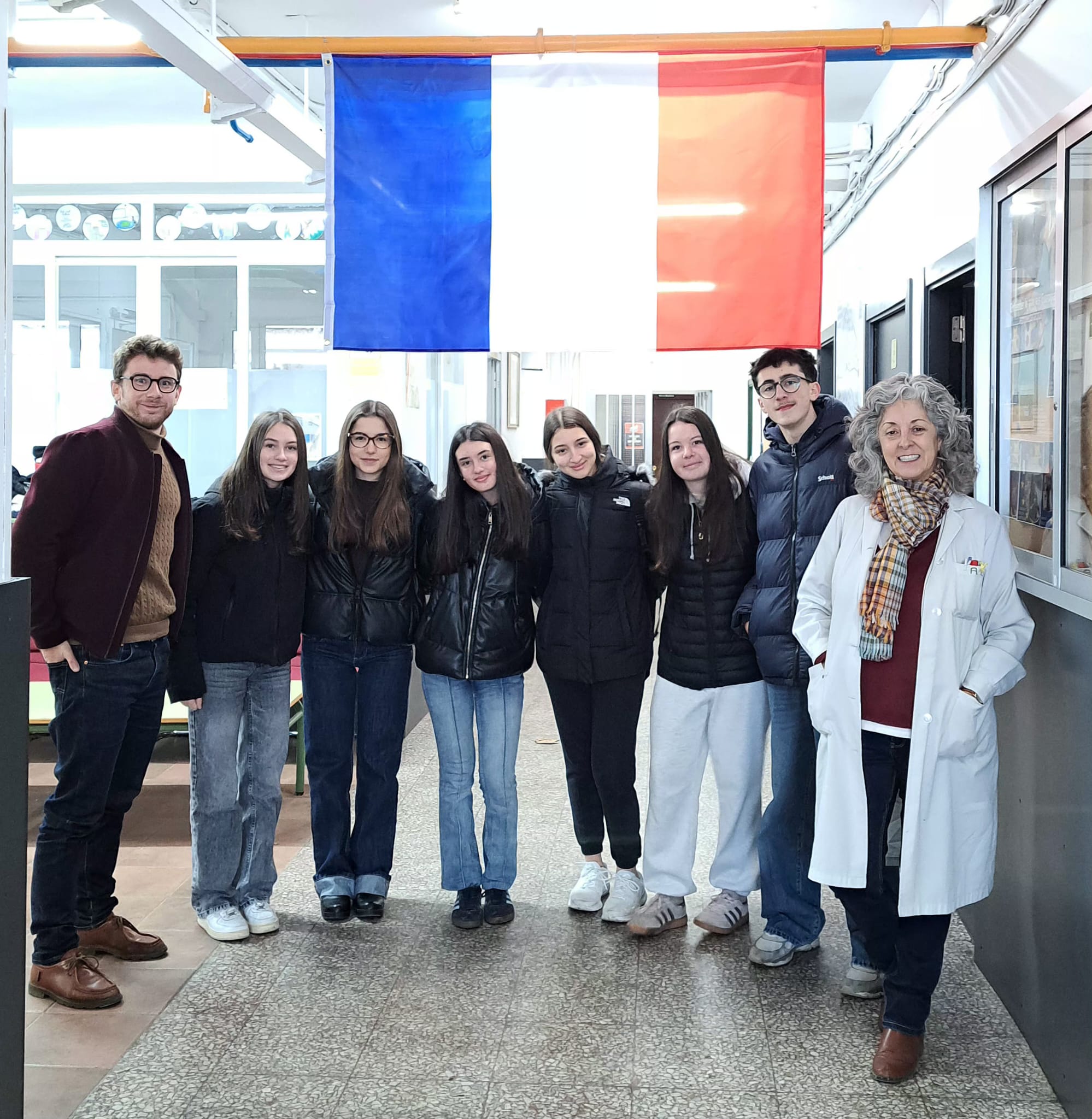Nos trois élèves de Seconde sont bien arrivées à León en Espagne, pour leur Long term Learning. Ils posent sur cette photo avec leurs correspondantes, M. Le Gall professeur accompagnateur du lycée Saint-Joseph et Amaya, professeure au lycée de León.